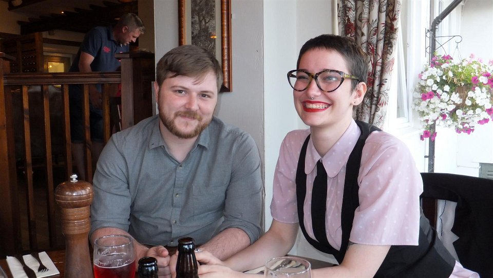 Kit and James at the Ty Mawr, Cardiff for a celebration meal.